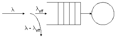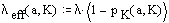 The effective arrival rate, therefore is the product of l and (1 - pK). Here's how